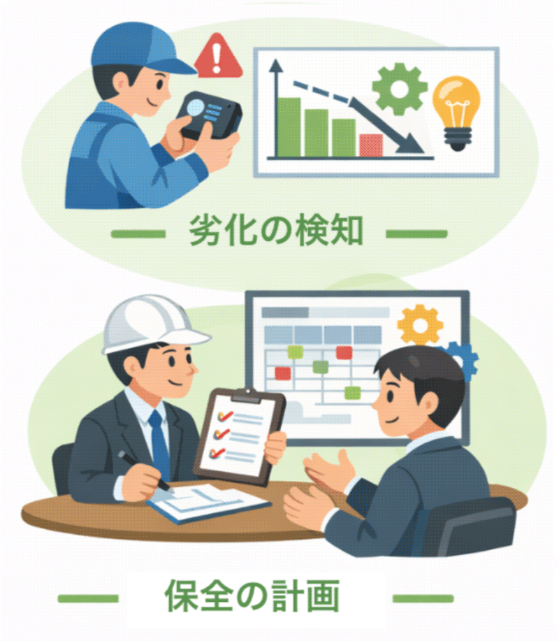 このサイクルを回すことで、社内にノウハウが蓄積され、設備管理のレベルを継続的に高めることができます。